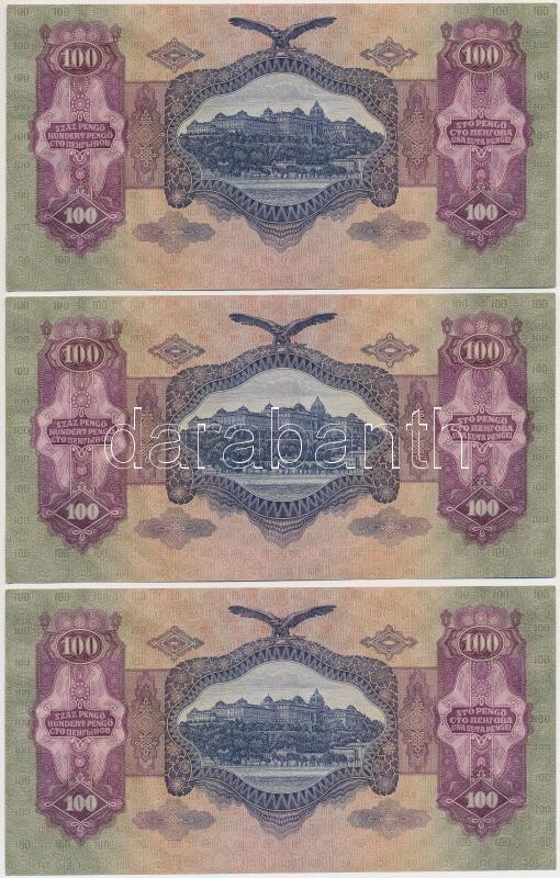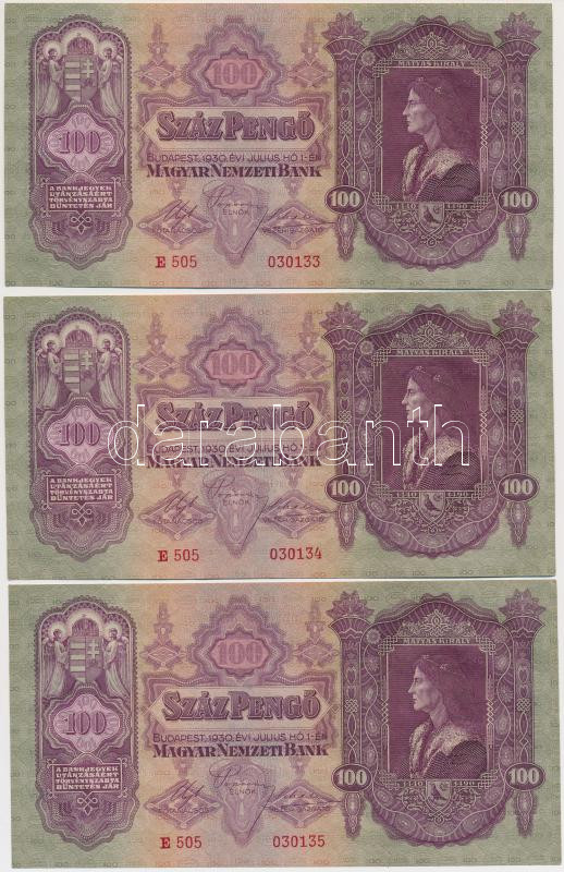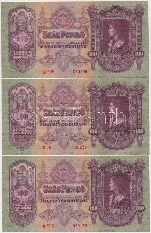 1930. 100P (6x) sorszámkövetők T:I-,II https://www.darabanth.com/hu/262-Gyorsarveres/262.0/Numizmatika/Magyar-bankjegyek~200008/1930-100P-6x-sorszamkovetok-TI-II~II1304374