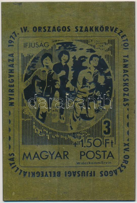 Leírás: 1977. "Nyíregyháza IV. Országos Szakkörvezetői Tanácskozás - XV. Országos Ifjúsági Bélyegkiállítás" egyoldalas fém plakett (80,5x120mm) T:2-