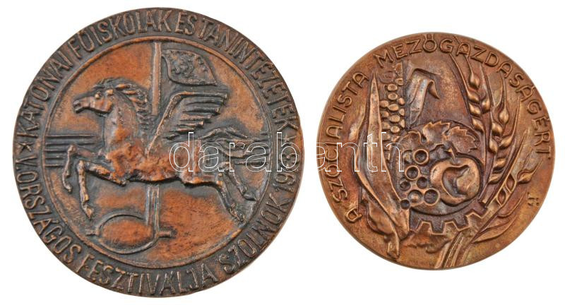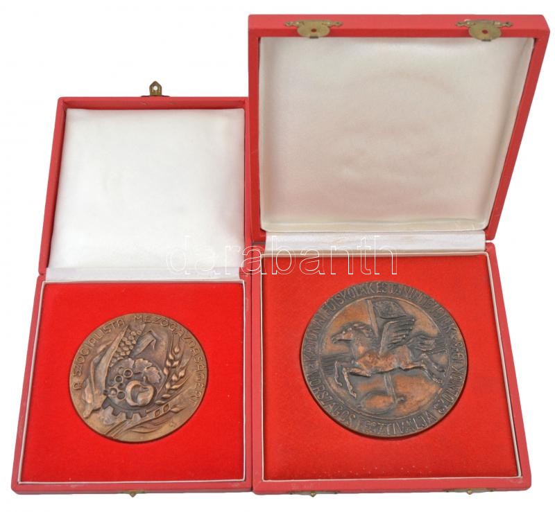 Leírás: Lajos József (1936-) ~1970. "A szocialista mezőgazdaságért" Br egyoldalas emlékérem dísztokban (88,5mm) + 1975. "Katonai Főiskolák VI. Fesztiválja - Szolnok 1975" Br plakett dísztokban (110mm) T:1-,2