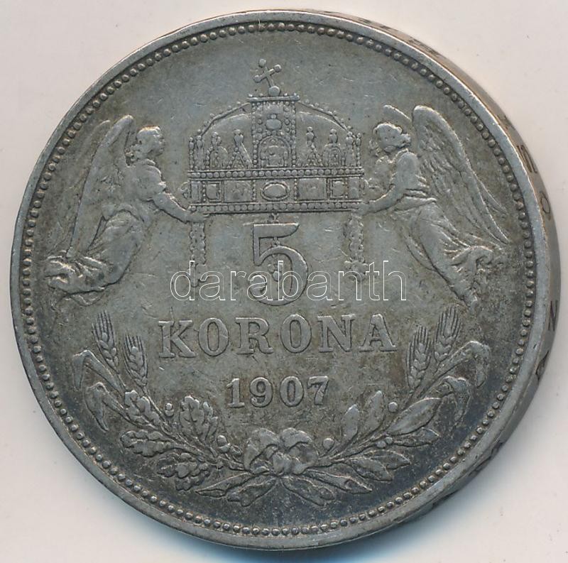 1907KB 5K Ag "Ferenc József" T:2-,3 ph. https://www.darabanth.com/hu/262-Gyorsarveres/262.0/Numizmatika/Magyar-es-magyar-verdejelu-fem-es-ezustpenzek~200009/1907KB-5K-Ag-Ferenc-Jozsef-T2-3-ph~II1300403