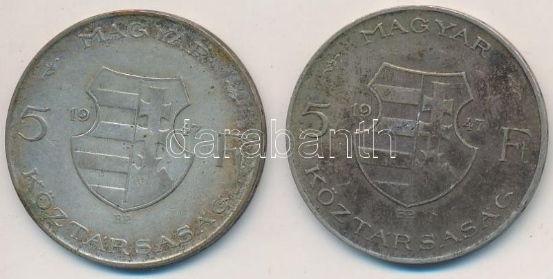 Leírás: 1947. 5Ft Ag "Kossuth" (2x) T:2-,3 patina