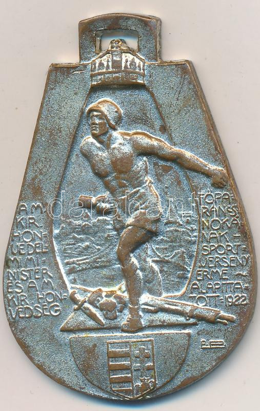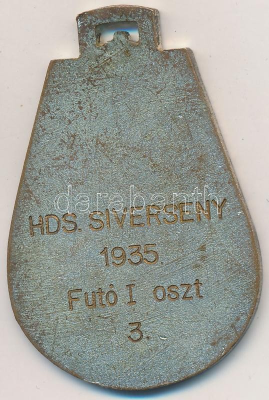 1935. "A Magyar Királyi Honvédelmi Miniszter és a Magyar Királyi Honvédség Főparancsnokának Sportverseny Érme - Alapíttatott 1922 / Hds. síverseny. Futó I. oszt. 3." ezüstözött Br díjérem szalag nélkül (57x37mm) T:2