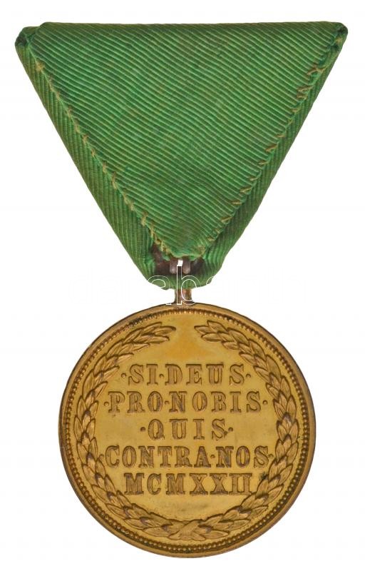 Hungary 1939. "Hungarian Bronze Merit Medal" gilt Br decoration with ribbon, on the edge "BRONZE" mark C:XF edge error