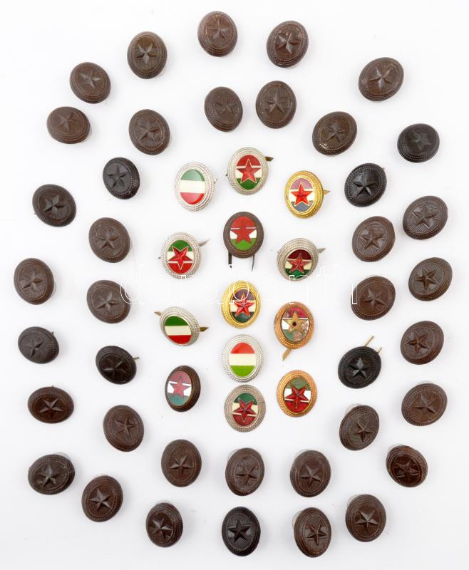 Leírás: ~1960-1980. 52db "MN" sapkarózsa, zománcozott fém és műanyag változatok T:vegyes