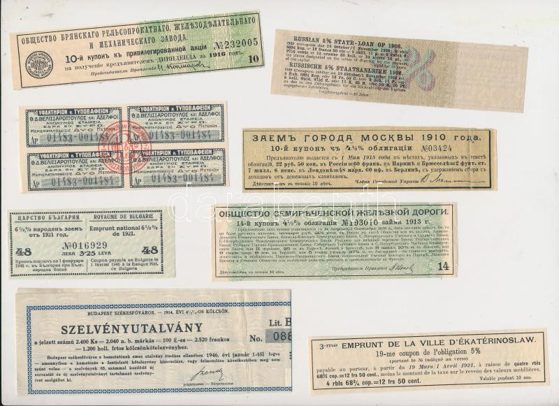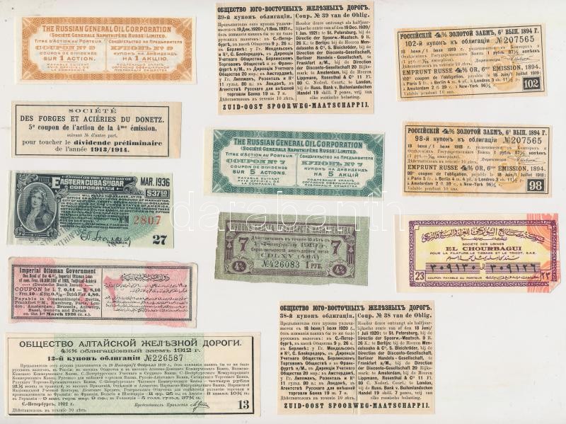 Leírás: 37db-os magyar és külföldi részvény és kötvény szelvény tétel T:vegyes