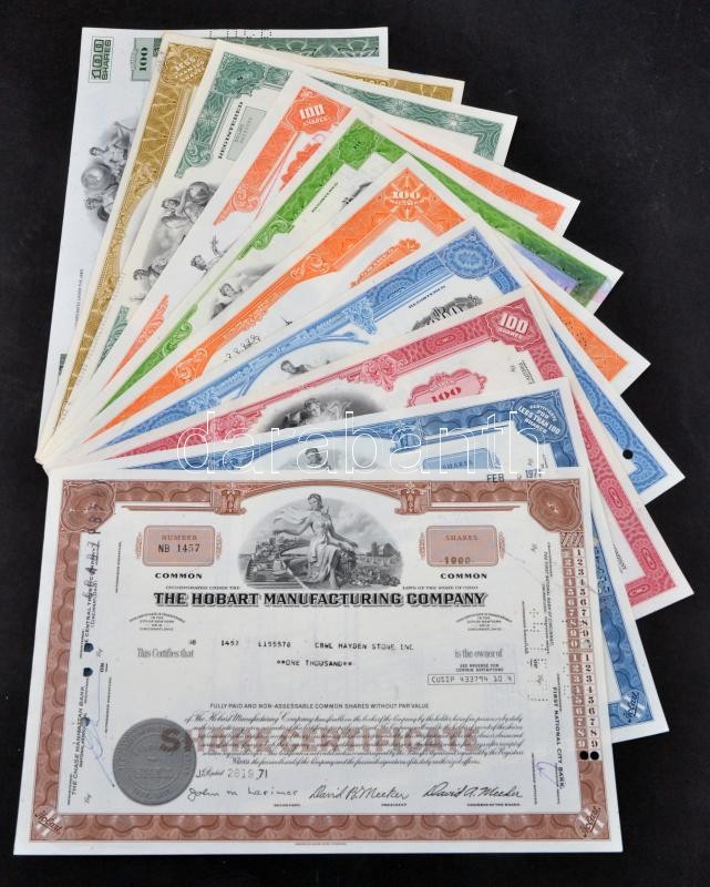 Amerikai Egyesült Államok 1960-1989. 10db klf részvény perforációval, bélyegzésekkel, lyukasztással érvénytelenítve T:I-III