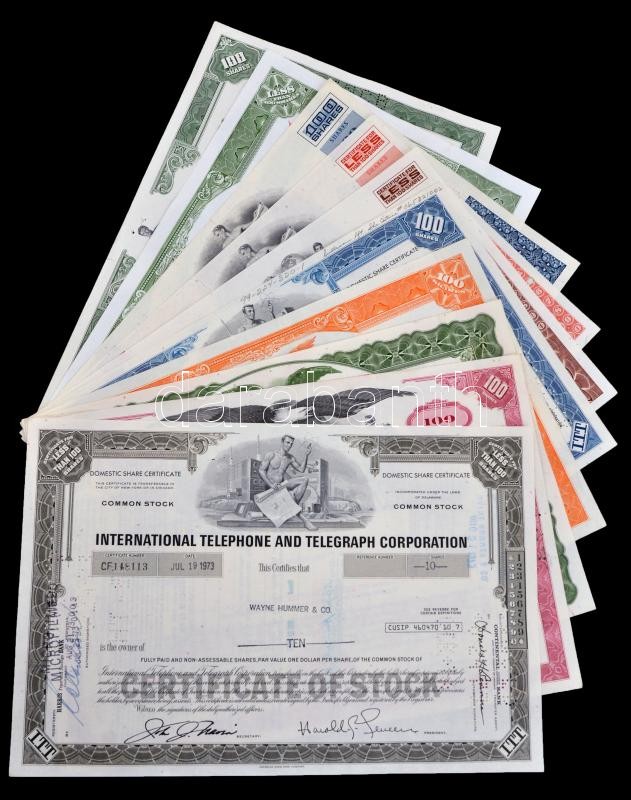 Amerikai Egyesült Államok 1964-1977. 10db klf részvény perforációval, ...