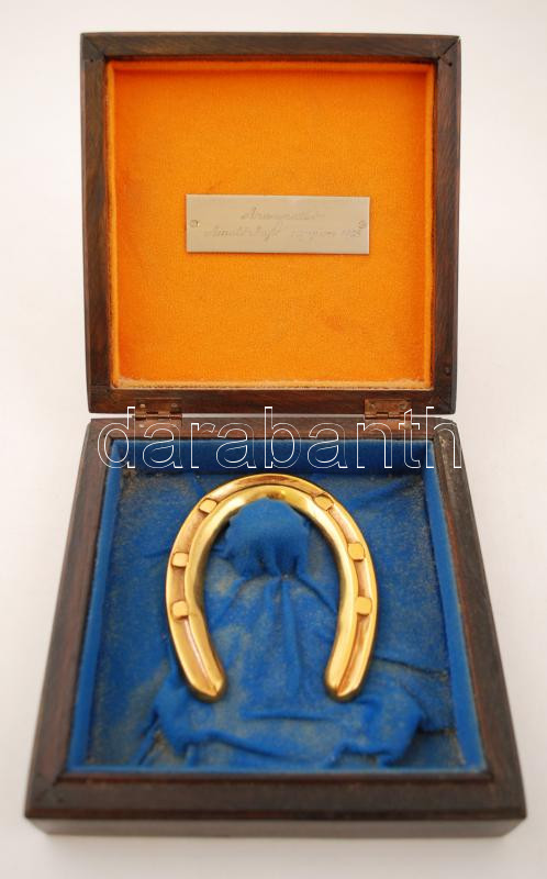 Leírás: 1985 réz díszpatkó, "Aranypatkó Amatőrhajtó sampion", eredeti fa dobozában, 10×8 cm