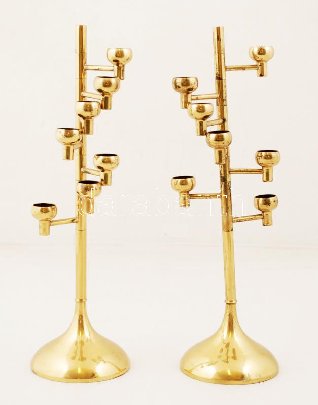 Leírás: 2 db réz gyertyatartó "Födrös" jelzéssel, m: 37,5 cm
