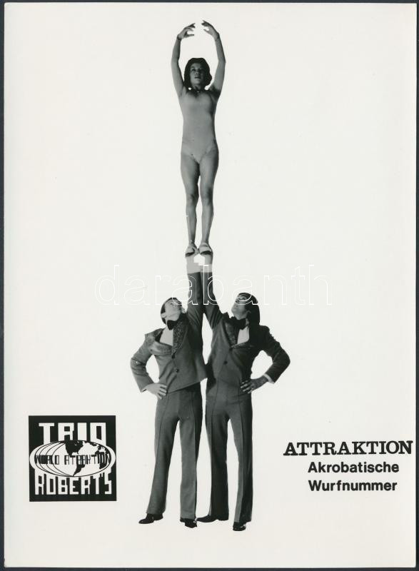 Roberts Trio Attraktion, reklámfotó, 18×13 cm https://www.darabanth.com/hu/263-Gyorsarveres/263.0/Festmeny-mutargy-papirregiseg-egyeb/Foto~33/Roberts-Trio-Attraktion-reklamfoto-18C39713-cm~II1307577