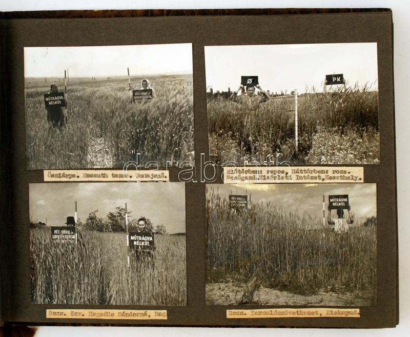 Leírás: cca 1950 Növény nemesítés Keszthelyen, Balatonakarattyán és az ország más településein, fotóalbum feliratozva, 48 db fotó, 9x12 cm