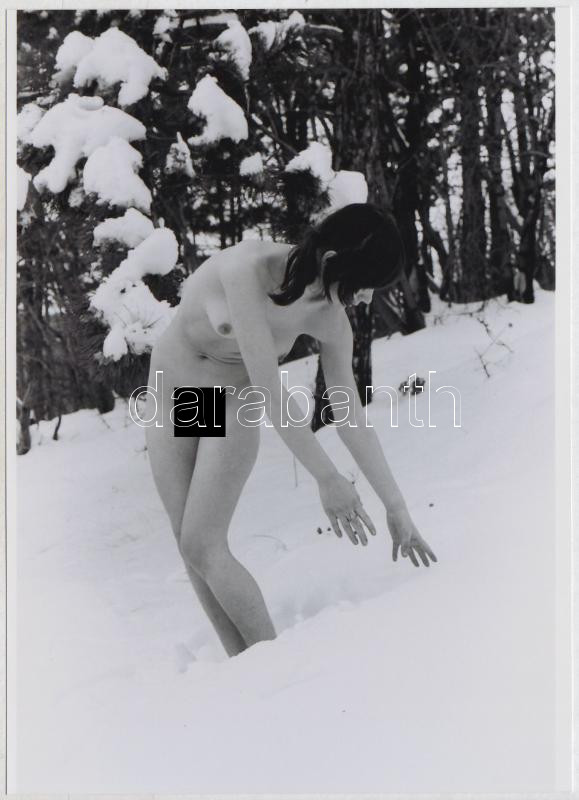Leírás: cca 1974 A hóember felesége, finoman erotikus fénykép, korabeli negatívról készült modern nagyítás, 13x18 cm / erotic photo, 13x18 cm
