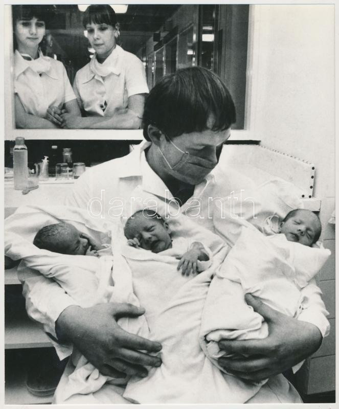 Leírás: cca 1987 Szolnok, hármas ikrei születtek a jászberényi Hamar házaspárnak, vintage hírfotó, 22x18 cm