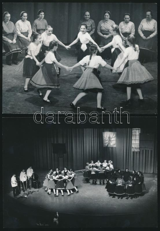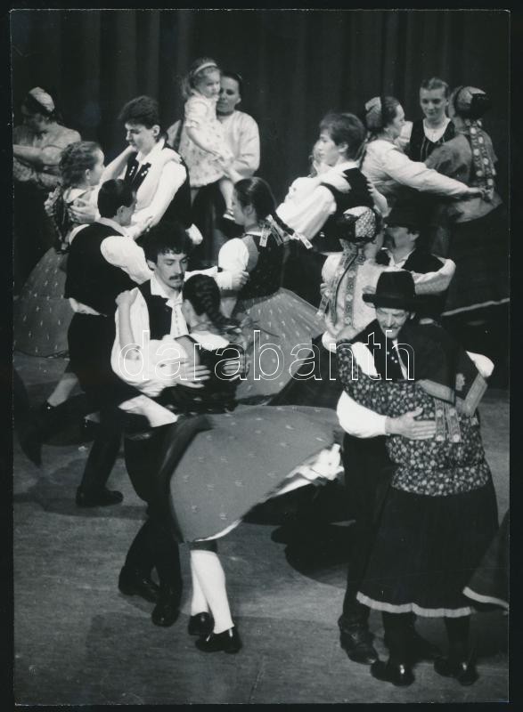 Leírás: cca 1988 Muharay Elemér népi együttes előadása, Kresz Albert pecséttel jelzett 3 db vintage táncfotója, 12x17 cm