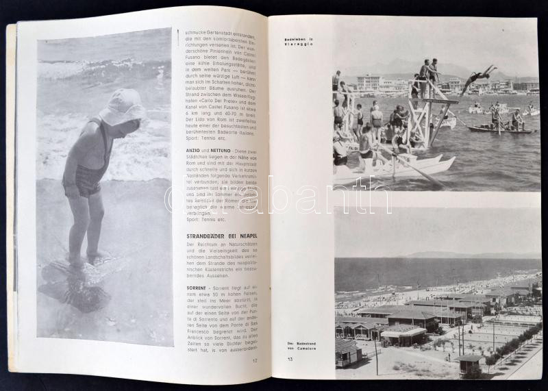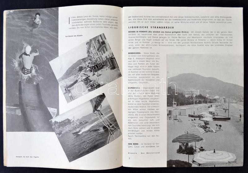 1938 Olasz fürdőhelyek, Italienische Strandbader, pp.:40, 23x18cm https://www.darabanth.com/hu/263-Gyorsarveres/263.0/Festmeny-mutargy-papirregiseg-egyeb/Nyomtatvanyok~12/1938-Olasz-furdohelyek-Italienische-Strandbader-pp40-23x18cm~II1308867