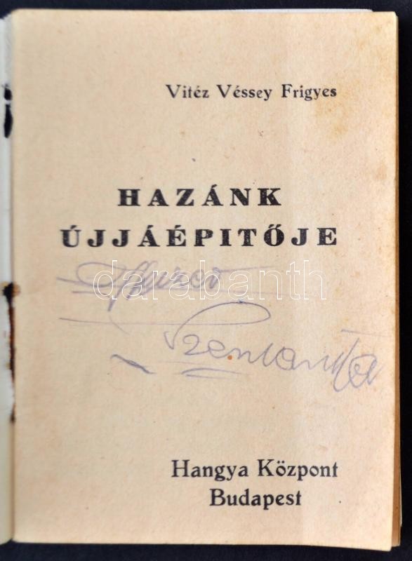 Leírás: 1939 Vitéz Véssey Frigyes: Hazánk újjáépítője. Hangya Központ, Budapest, Kultura ny. Kispest, pp.:40, 7x5cm
