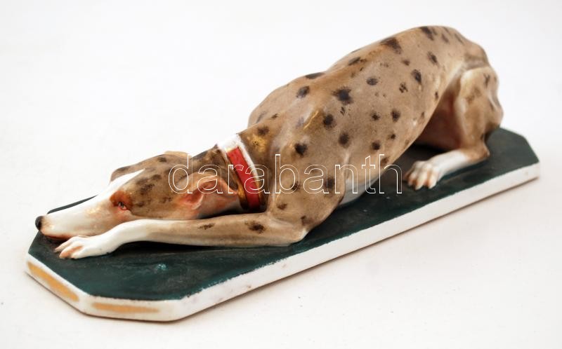 Leírás: Fekvő agár, kézzel festett, jelzés nélkül, hibátlan, h:24 cm, m:7 cm