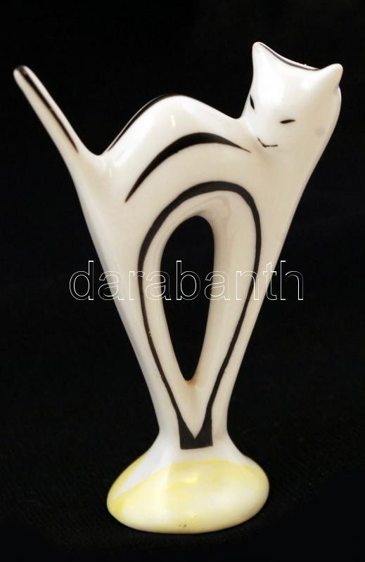 Leírás: Hollóházi púpozó macska, kézzel festett, jelzett, hibátlan, m: 9 cm