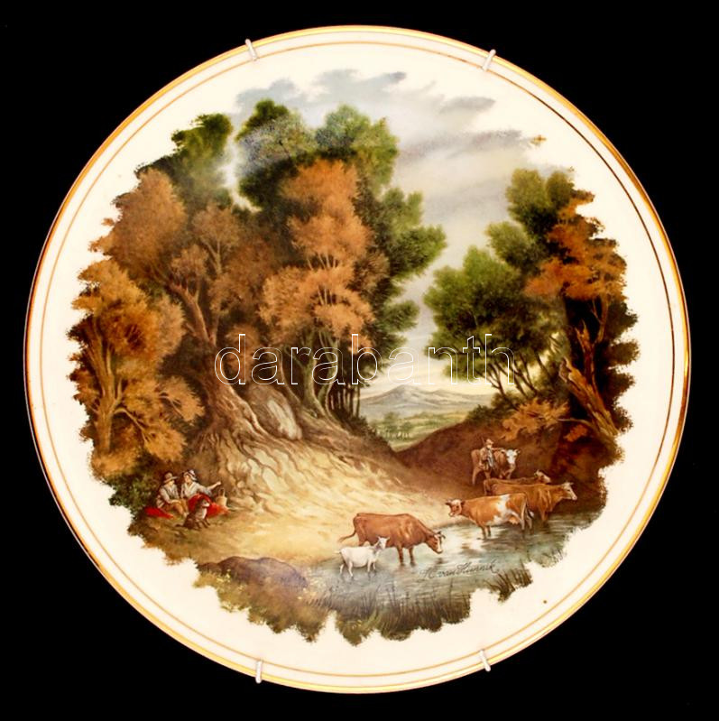 Leírás: Jelzett angol falitányér (J.C. von Hunnik festménye után), matricás, hibátlan, d:26,5 cm