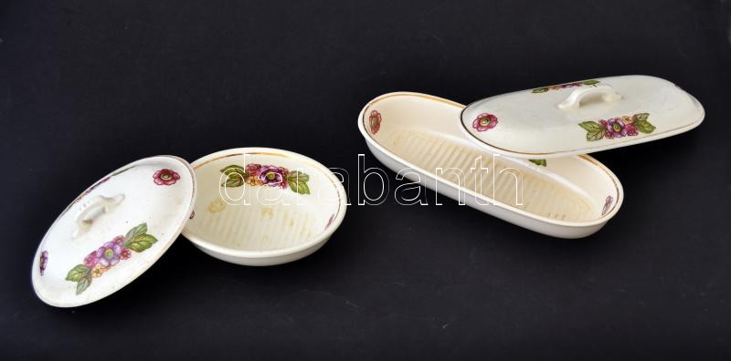 Leírás: Villeroy & Boch porcelán szappantartók, kézzel festett, aranyozott, jelzett, kopásnyomokkal. 2db, 15x12x7 cm illetve 24x10x7 cm.