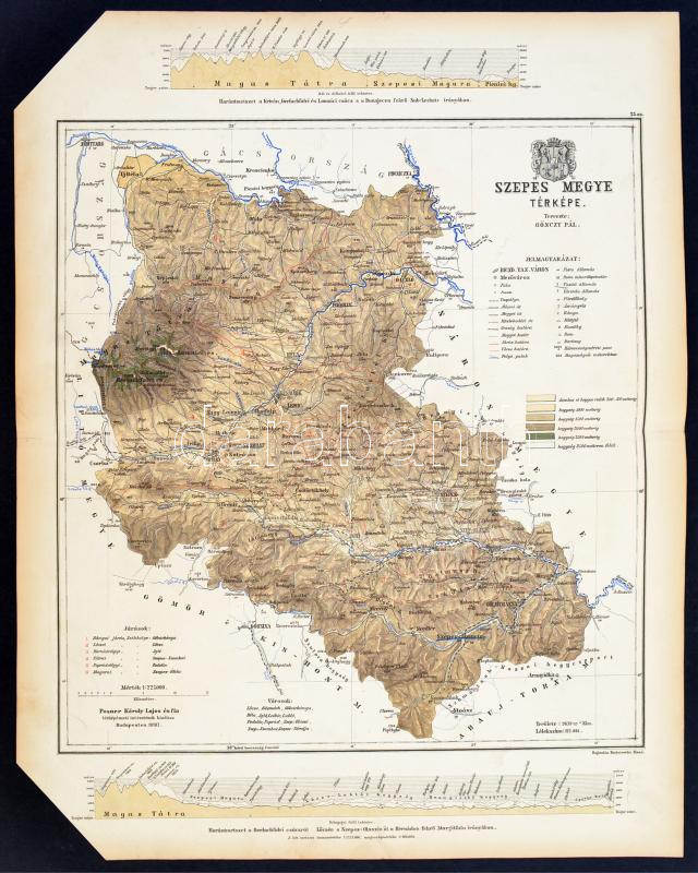 Szepes megye térképe, Gönczy Pál - Kogutowicz Manó: Magyarország megyéinek kézi atlasza. Tervezte: - -, rajzolta: - - Bp. (1890.) Posner Károly Lajos és fia. Sarok levágva, 56x45cm