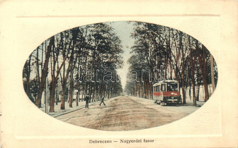 Leírás: Debrecen, Nagyerdei fasor, villamos