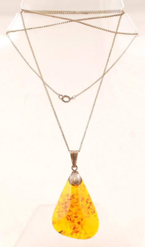 Leírás: Borostyán medál ezüst lánccal / Amber broche, with silver chain 12,6 g