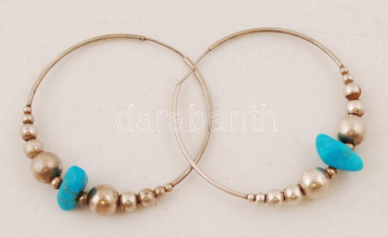 Leírás: Ezüst karika-fülbevaló, Ag, bruttó: 5,8gr., jelzés nélkül, d:4cm /Silver hoop earrings, Ag, gross: without hallmark, 5.8 gr., d:4cm