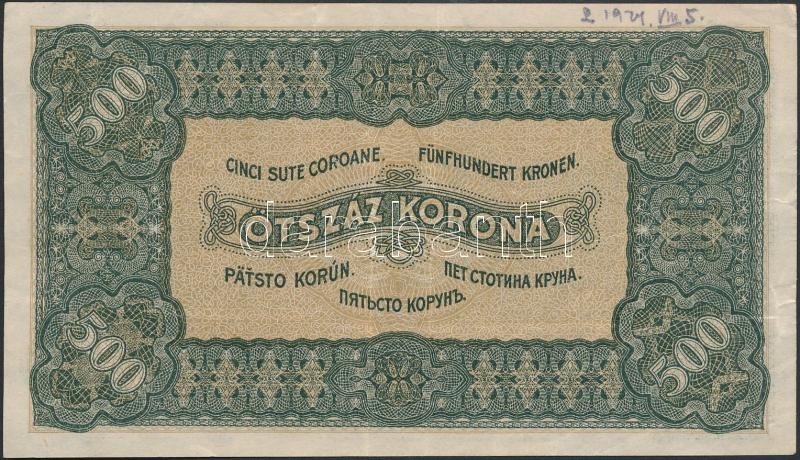 Leírás: 1923. 500K "Magyar Pénzjegynyomda Rt. Budapest" T:III