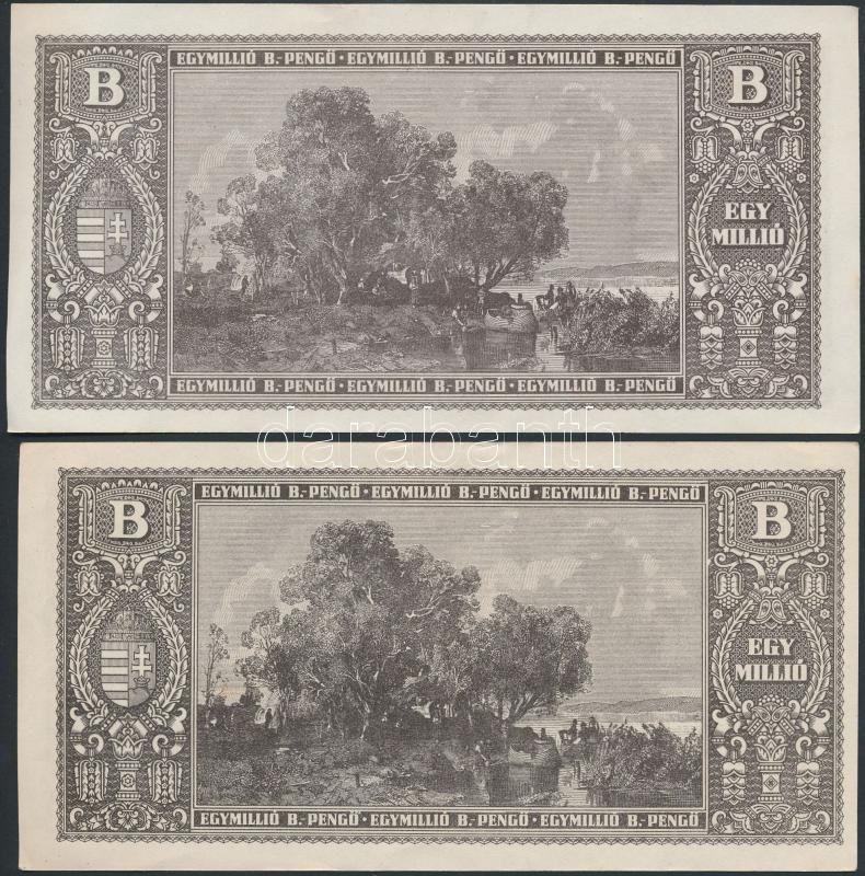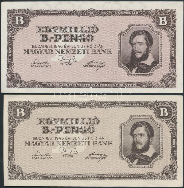 1946. 1.000.000BP 2xklf színváltozat T:I- https://www.darabanth.com/hu/263-Gyorsarveres/263.0/Numizmatika/Magyar-bankjegyek~300007/1946-1000000BP-2xklf-szinvaltozat-TI-~II1311319