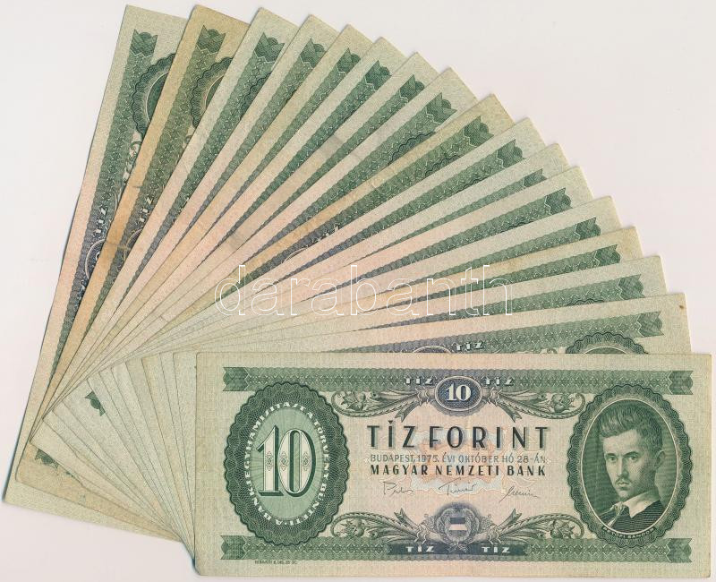 1975. 10Ft (17x) T:vegyes https://www.darabanth.com/hu/263-Gyorsarveres/263.0/Numizmatika/Magyar-bankjegyek~300007/1975-10Ft-17x-Tvegyes~II1309369
