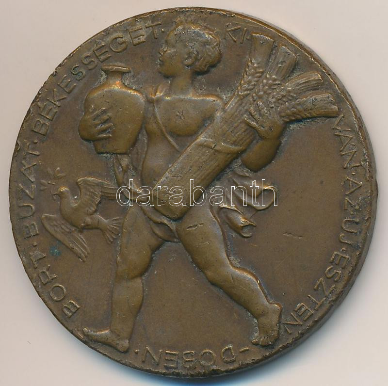 1947. "A Magyar Állami Pénzverő / Bort, búzát, békességet kíván az új ... https://www.darabanth.com/hu/263-Gyorsarveres/263.0/Numizmatika/Magyar-emlekveretek-plakettek~300020/1947-A-Magyar-Allami-Penzvero-Bort-buzat-bekesseget-kivan-az-uj-esztendoben-Br-eml~II1309799