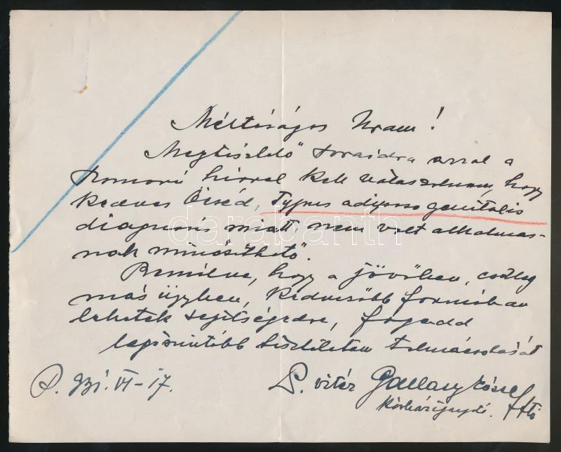 1931 Dr. vitéz Gallay József levele Pekár MIhályhoz https://www.darabanth.com/hu/264-Gyorsarveres/264.0/Festmeny-mutargy-papirregiseg-egyeb/Alairas~17/1931-Dr-vitez-Gallay-Jozsef-levele-Pekar-MIhalyhoz~II1315103