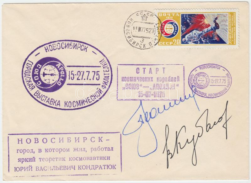 Leírás: Alekszej Leonov (1934- ) és Valerij Kubaszov (1935-2014) orosz űrhajósok aláírásai emlékborítékon /