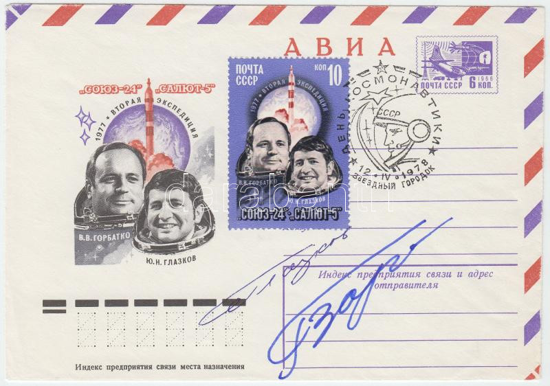 Jurij Glazkov (1939-2008) és Viktor Gorbatko (1934- ) orosz űrhajósok aláírásai emlékborítékon /