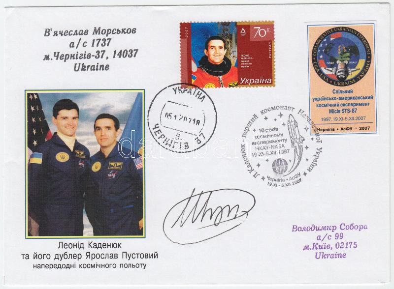 Leonyid Kadenyuk (1951- ) ukrán űrhajós aláírása emlékborítékon /