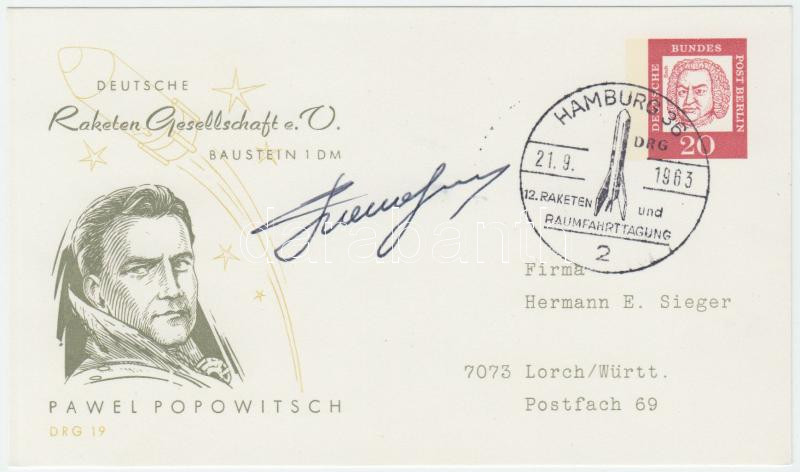 Pavel Popovics (1930-2009) orosz űrhajós aláírása emlék levelezőlapon ... https://www.darabanth.com/hu/264-Gyorsarveres/264.0/Festmeny-mutargy-papirregiseg-egyeb/Alairas~17/Pavel-Popovics-1930-2009-orosz-urhajos-alairasa-emlek-levelezolapon-----Signature-of-Pavel~II1316582