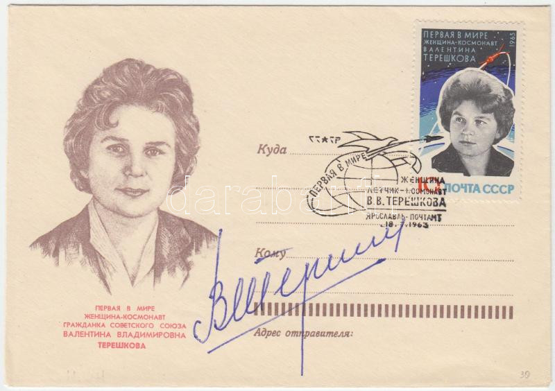 Leírás: Valentyina Vlagyimirovna Tyereskova (1937- ) orosz űrhajós aláírása emlékborítékon /