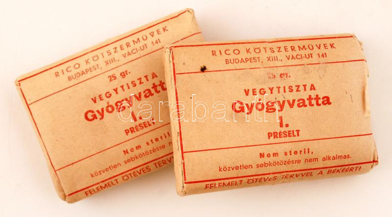 1953 Rico kötszerművek Vegytiszta Gyógyvatta, 2 db bontatlan csomag https://www.darabanth.com/hu/264-Gyorsarveres/264.0/Festmeny-mutargy-papirregiseg-egyeb/Bolhapiac~10/1953-Rico-kotszermuvek-Vegytiszta-Gyogyvatta-2-db-bontatlan-csomag~II1318954