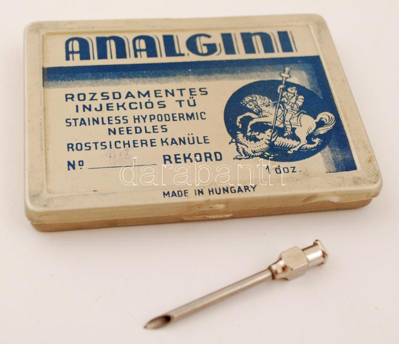 Analgini rozsdamentes injekciós tű fém doboza, benne 12 db injekciós t... https://www.darabanth.com/hu/264-Gyorsarveres/264.0/Festmeny-mutargy-papirregiseg-egyeb/Bolhapiac~10/Analgini-rozsdamentes-injekcios-tu-fem-doboza-benne-12-db-injekcios-tuvel~II1318970
