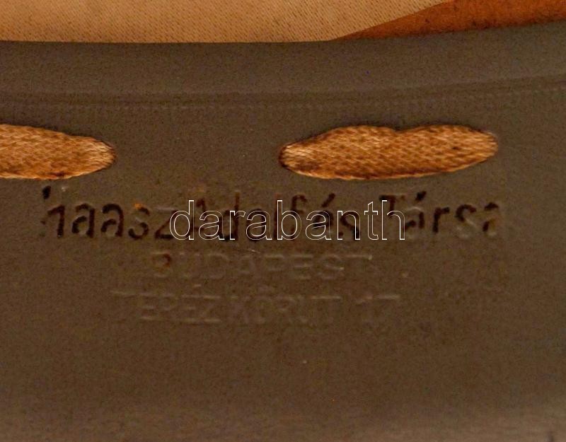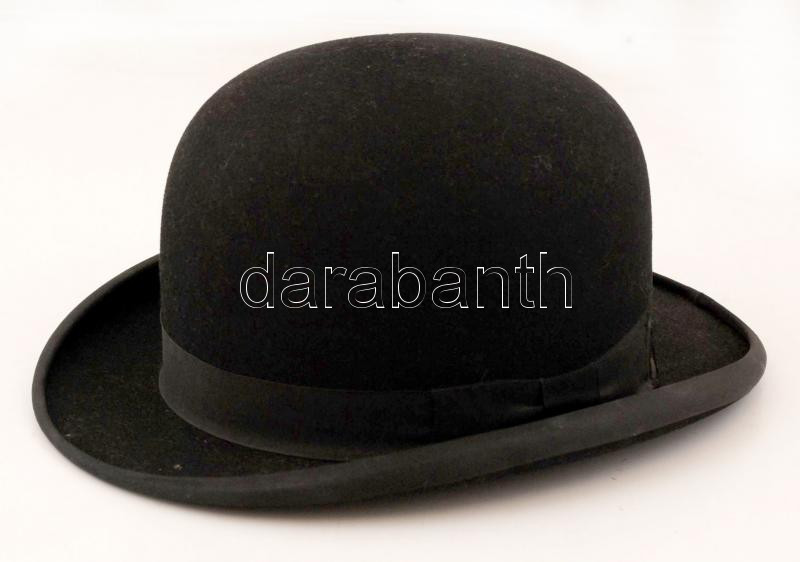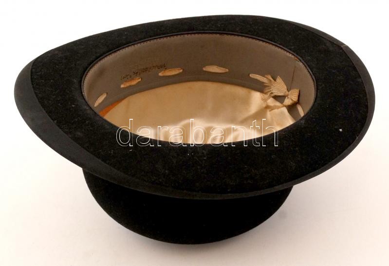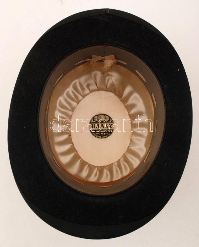 Leírás: Fekete keménykalap, jelzett (Haasz, Budapest), belső méret: 19,5×16,5 cm