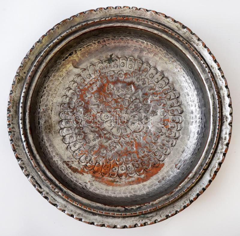 Keleti mintával díszített fém tál, kopott, d: 26 cm, m: 5 cm https://www.darabanth.com/hu/264-Gyorsarveres/264.0/Festmeny-mutargy-papirregiseg-egyeb/Bolhapiac~10/Keleti-mintaval-diszitett-fem-tal-kopott-d-26-cm-m-5-cm~II1320622