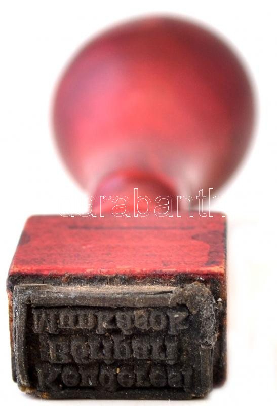 Leírás: "Kenderesi Bőripari Munkások" feliratú fa bélyegző, 2×1,5 cm, m: 8 cm