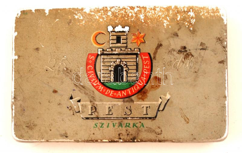 "Pest Szivarka" fém cigarettás doboz, 7x11x1 cm https://www.darabanth.com/hu/264-Gyorsarveres/264.0/Festmeny-mutargy-papirregiseg-egyeb/Bolhapiac~10/Pest-Szivarka-fem-cigarettas-doboz-7x11x1-cm~II1318966