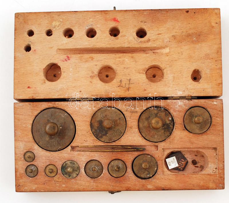Régi súlykészlet, 11 db súllyal, csipesszel, hiányos, fa dobozban https://www.darabanth.com/hu/264-Gyorsarveres/264.0/Festmeny-mutargy-papirregiseg-egyeb/Bolhapiac~10/Regi-sulykeszlet-11-db-sullyal-csipesszel-hianyos-fa-dobozban~II1319787