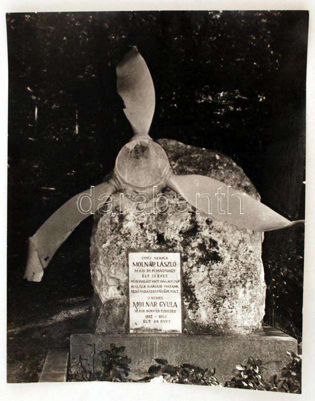 cca 1985 Horváth Endre: Soproni hősi temető, Molnár László repülős hadnagy és Molnár Gyula m. kir. honvéd ezredes emlékműve, feliratozott vintage fotó, 30x24 cm