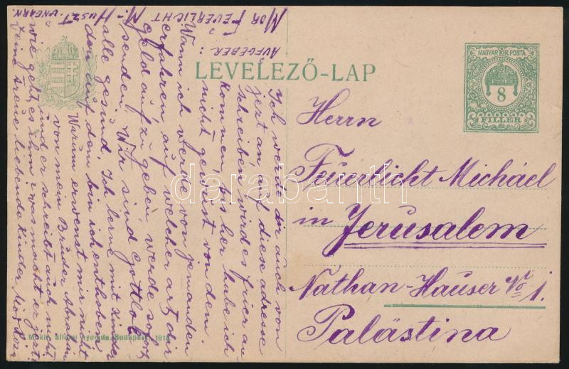 Leírás: 1915 Feuerlicht Mór.rabbi és héber nyelvész saját kézzel írt levele rokonának Jeruzsálembe / Autograph written letter