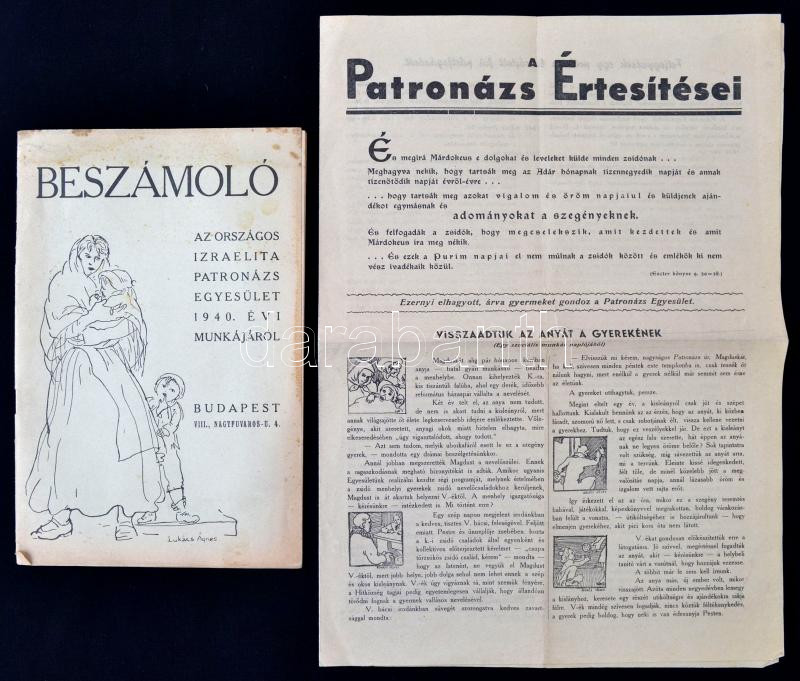 Leírás: 1940 Beszámoló az Izraelita patronász egyesület munkájáról + Patronázs értesítés c. újság.
