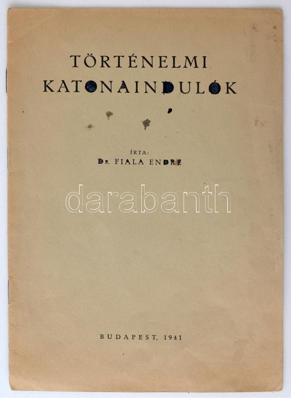 1941, Fiala Endre dr.:Történelmi katonaindulók, Budapest, pp.:11, 24x1... https://www.darabanth.com/hu/264-Gyorsarveres/264.0/Festmeny-mutargy-papirregiseg-egyeb/Militaria~23/1941-Fiala-Endre-drTortenelmi-katonaindulok-Budapest-pp11-24x15cm~II1316581