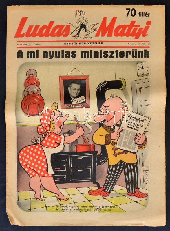 1946 Bp., A Ludas Matyi szatirikus hetilap II. évfolyamának 41. száma,... https://www.darabanth.com/hu/264-Gyorsarveres/264.0/Festmeny-mutargy-papirregiseg-egyeb/Nyomtatvanyok~25/1946-Bp-A-Ludas-Matyi-szatirikus-hetilap-II-evfolyamanak-41-szama-8p~II1319559